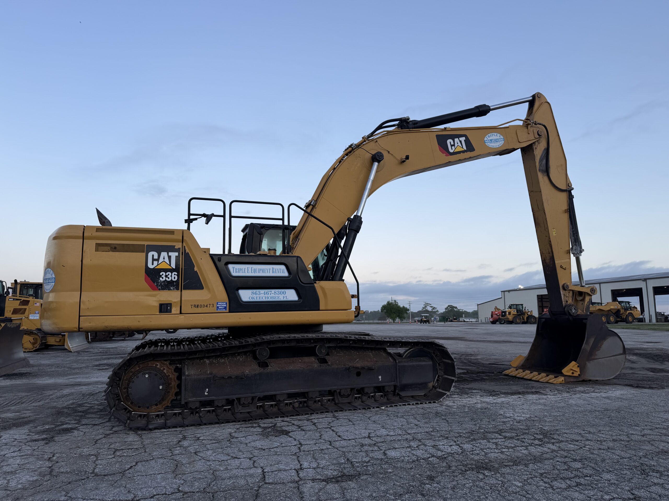 Description: 60′ CAT long reach arrangement, 60″ clean out bucket, high ambient cooling package, hand pattern control changer.